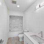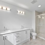 There are 4 bedrooms located on the second floor.  A main bath with linen closet and one-piece tub/shower unit is shared between the additional bedrooms.  The primary suite is ample in size and includes a large walk-in closet and it’s own ensuite bathroom.  Ensuite bath features double sinks and a one-piece tub/shower unit standard.