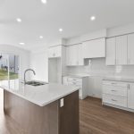 • -Kitchen Cabinetry with elevated upper cabinets, deep fridge upper & gable, large island with breakfast bar (as per plan).